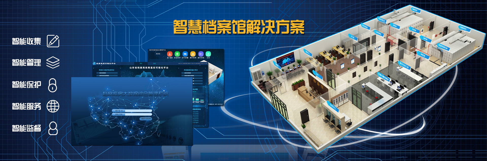 國(guó)韻根據(jù)山東省委宣傳部檔案管理的實(shí)際需求,為其設(shè)計(jì)建設(shè)了檔案庫房智能化綜合管理系統(tǒng),該系統(tǒng)將溫濕度自動(dòng)測(cè)控、智能防火、智能防盜、消毒滅菌等檔案保護(hù)功能集成于綜合管理平臺(tái),實(shí)現(xiàn)了檔案保護(hù)管理的智能化。該項(xiàng)目改善了山東省委宣傳部檔案庫房的環(huán)境,強(qiáng)化了對(duì)檔案的管理和保護(hù)。